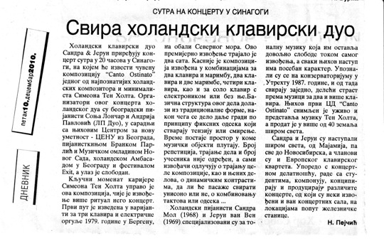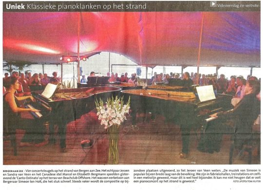 Noord Hollands Dagblad article about Canto on the Beach, August 17 & 18th 2012, Beachcluboffshore