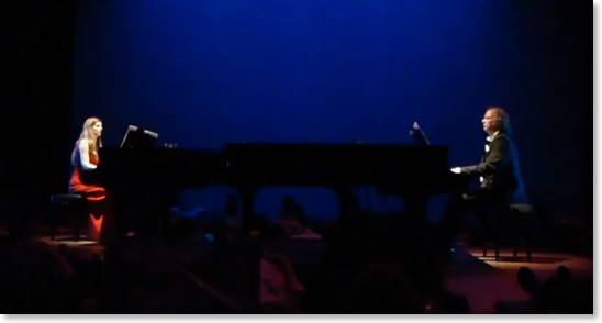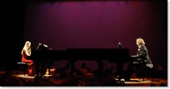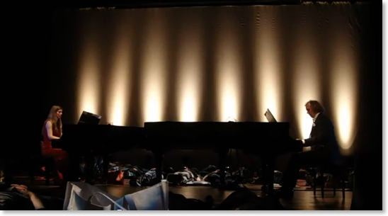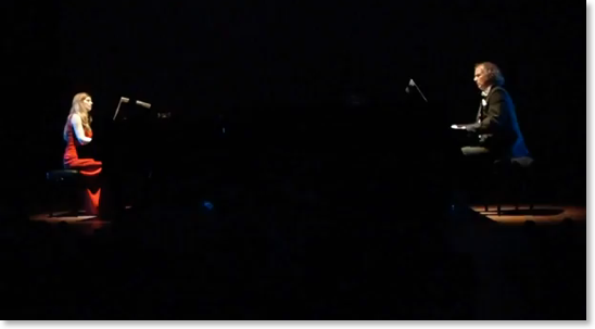 Canto Ostinato is een wonderschoon modern klassiek werk van Simeon ten Holt, gemaakt in (mijn geboortejaar) 1976. Een goede vriend liet het me een jaar of twaalf geleden horen. Ik was meteen hooked. Het is een stuk gemaakt voor twee tot vier piano’s en het is een soort trip van negentig minuten, met variaties op een steeds terugkerend thema. Er wordt wel gezegd dat je het ervaart als een treinreis waarin je meerdere landschappen doorkruist. Ik was 12 januari in het nieuwe DeLaMar Theater bij de uitvoering van Jeroen en Sandra van Veen, ja, man en vrouw. Een gedeelte van het publiek mocht op het toneel liggen om zo dicht mogelijk bij de vleugels te zijn en dus zo intens mogelijk de muziek te beleven. En daar lag ik, op mijn veel te weinig gebruikte yogamat tussen andere kampeerders. Sommigen hadden hele dekbedden meegenomen. Het was druk, we lagen hoofd aan hoofd. Meneer en mevrouw Van Veen kwamen in vol ornaat op en gingen achter de vleugels zitten. Het werd donker. Ik nestelde me liet mijn hoofd met een diepe, onhoorbare zucht op mijn kussentje vallen. De trein vertrok. De reis begon als een soort meditatie, ik was helemaal gefocust op de muziek en op mijn eigen ademhaling. Na een paar minuten opende ik mijn ogen en keek om me heen. Het was zo’n zoet beeld, al die volwassenen die stil en met een glimlach om de mond en nog net niet met hun duim erin, toch op avontuur waren. Ik sloot mijn ogen weer en vervolgde mijn reis. Negentig minuten later stapte ik uit de trein. Strontgelukkig.