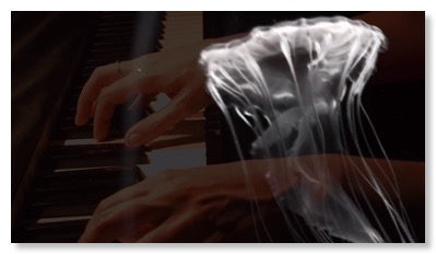 a live interaction between two pianists and visuals